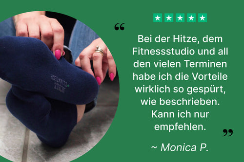 "Bisher habe ich nur die kurzen Socken ausprobiert und bin sehr zufrieden – keine Abdrücke, kein Unbehagen. Bald werde ich mir auf jeden Fall noch mehr davon holen".