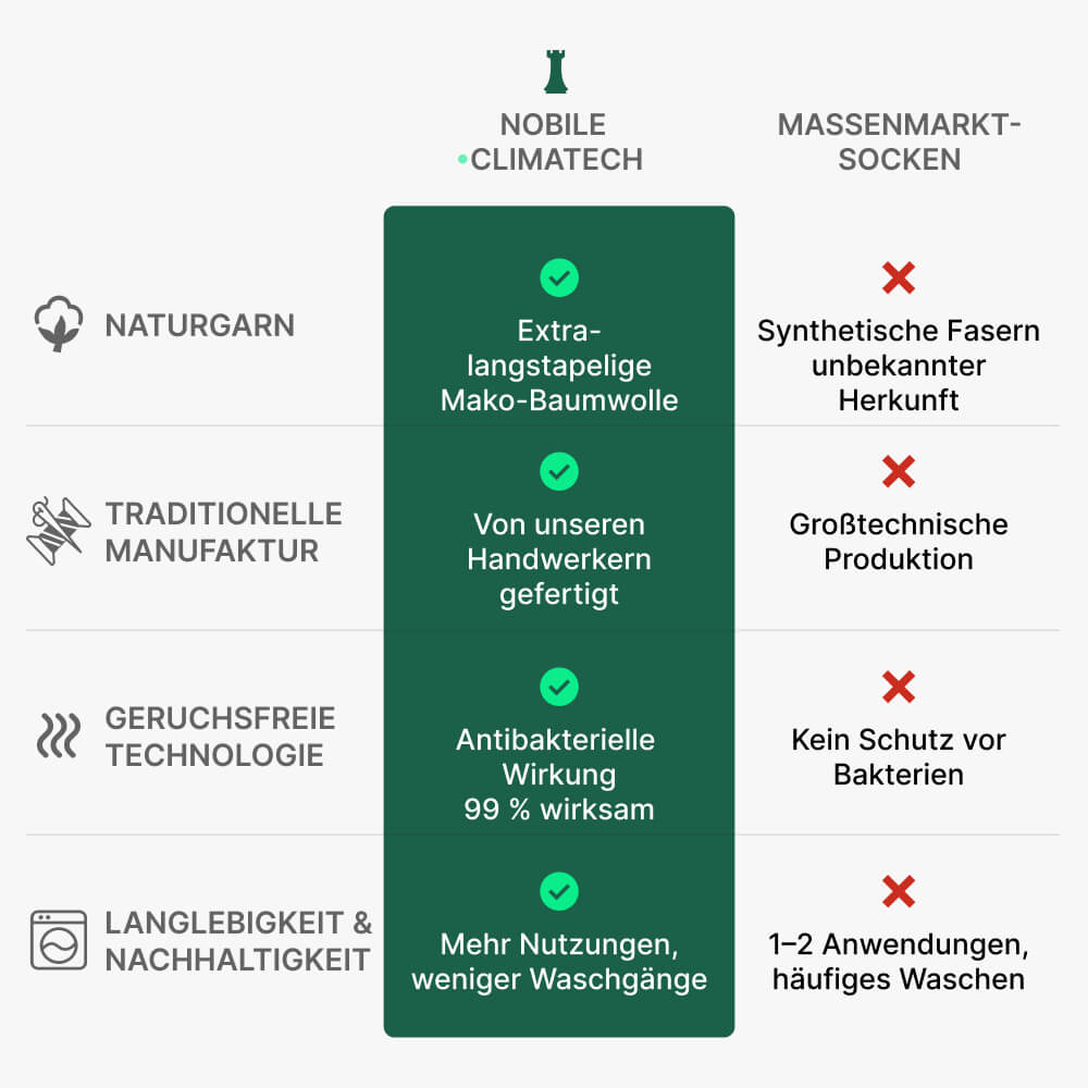 Climatech ist keine gewöhnliche Socke: Von der Auswahl der Garne über die Technologie bis hin zur Verarbeitung handelt es sich um ein innovatives Produkt, das geschaffen wurde, um alltägliche Herausforderungen zu lösen.