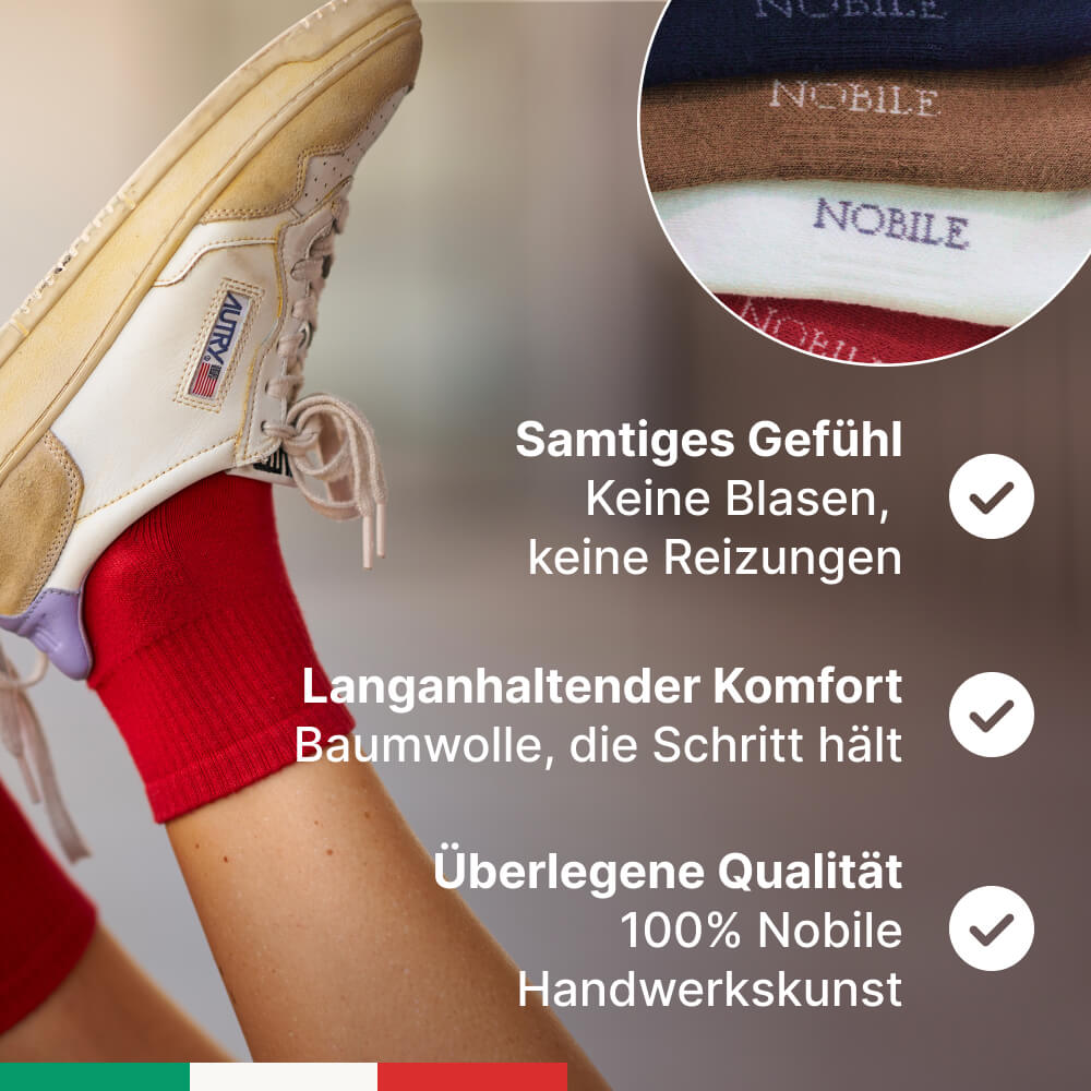 Die Nobile Sportsocken umhüllen Ihre Füße mit außergewöhnlichem Komfort und minimieren das Risiko von Reizungen und Blasen.