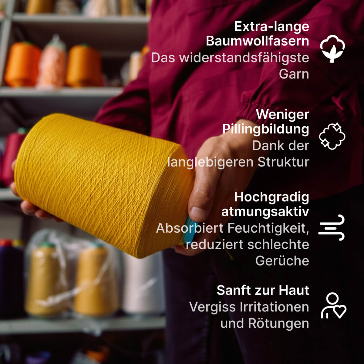 Die Qualität der Makò-Baumwolle erkennst du bei der ersten Berührung: ein feineres, gleichmäßigeres und natürlich komfortableres Garn.