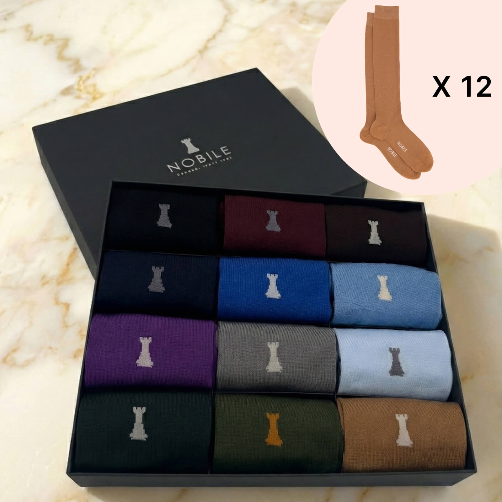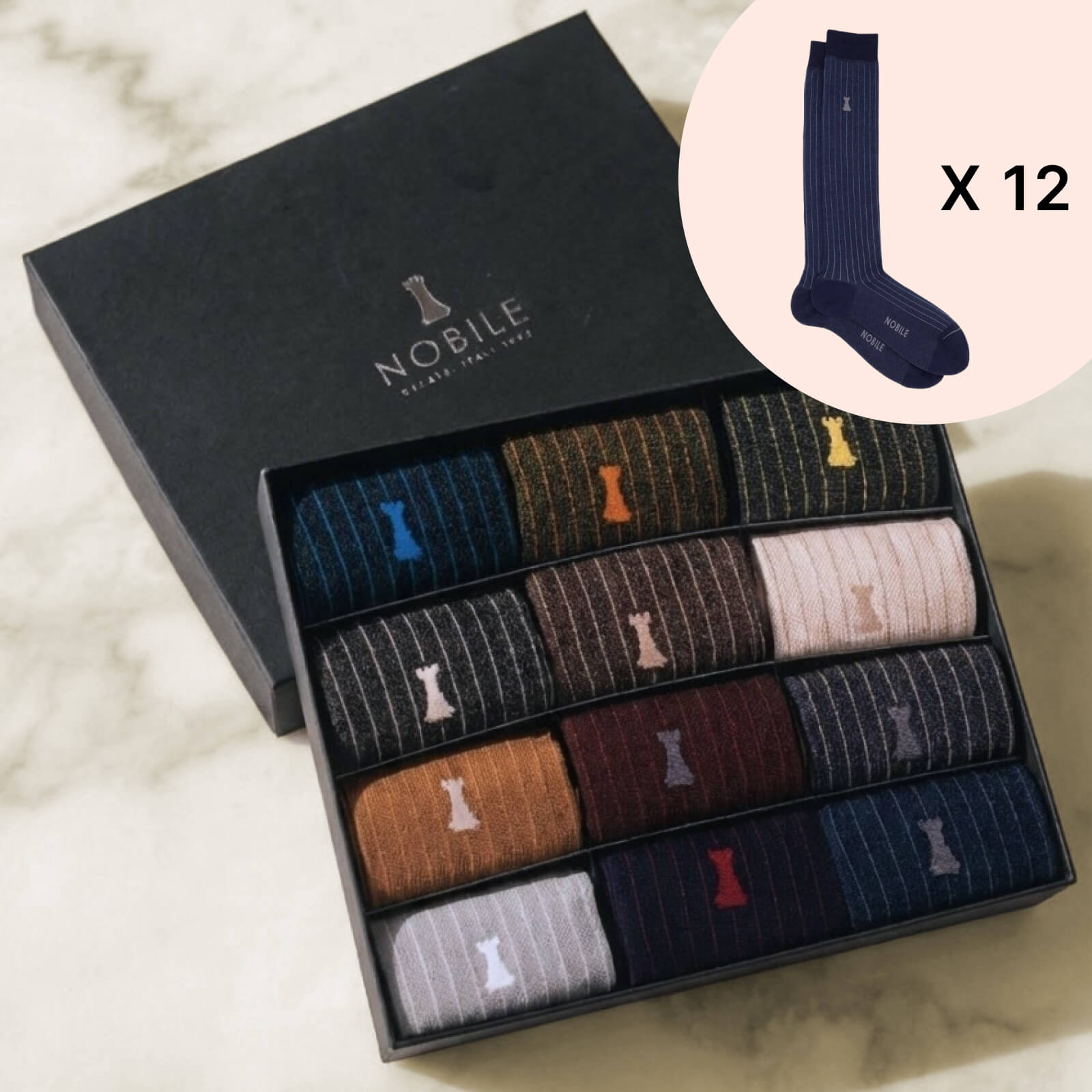 For the Sober Gentleman, socks in Filoscozia®, Merino Wool, Mulberry Silk, or Chiffon are the ideal choice to express elegance without ostentation. Choose refined tones inspired by nature, such as earthy colors, and opt for sophisticated patterns like ribbing, polka dots, or other micro patterns. Discover our Boxes, carefully curated selections for those who appreciate authentic style and quality.