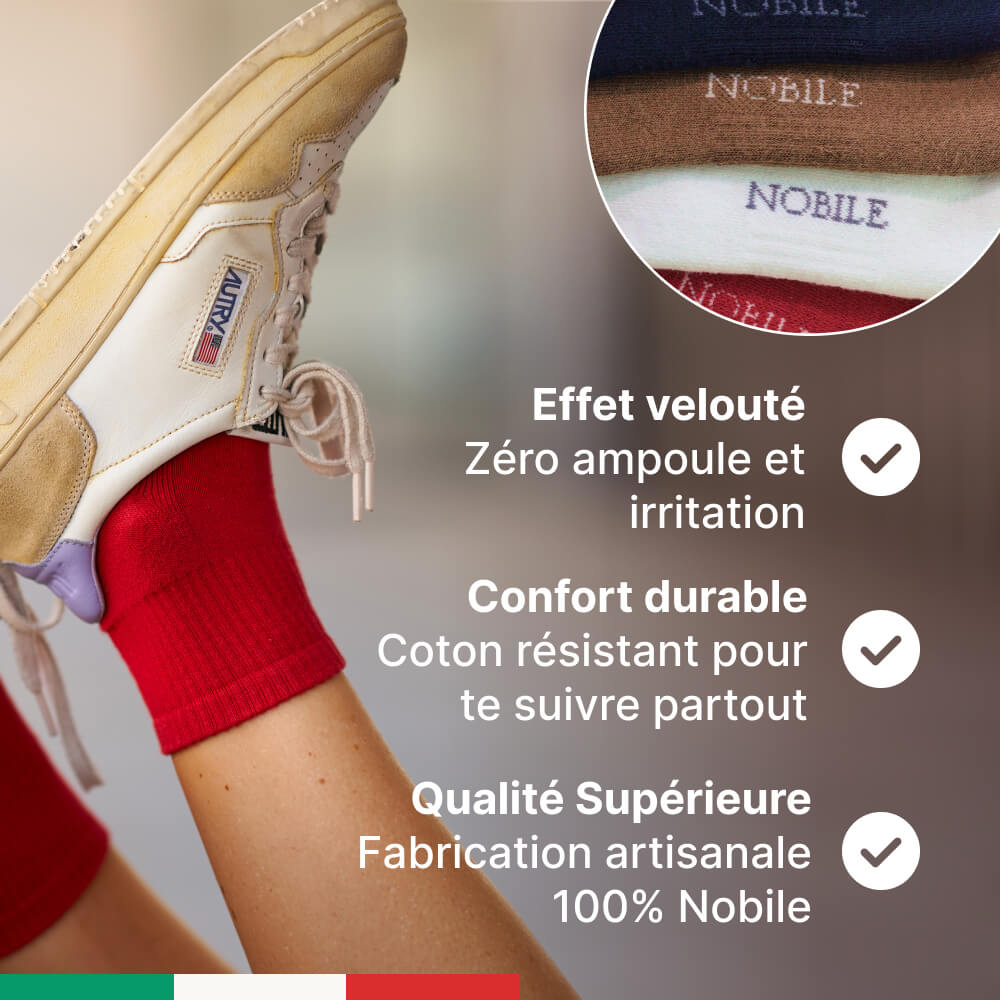 Les chaussettes de Sport Nobile enveloppent tes pieds d'un confort exceptionnel, minimisant le risque d'irritations et de cloques.