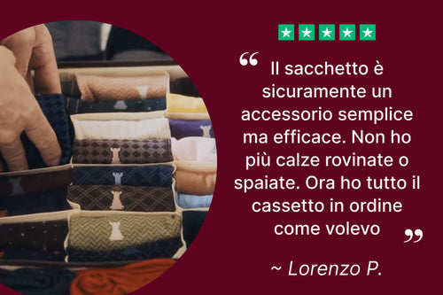 "A serious and reliable company, precise and punctual! They also offer custom sizes for those with specific needs. Moreover, the socks are genuinely Made in Italy. A truly unique product!"