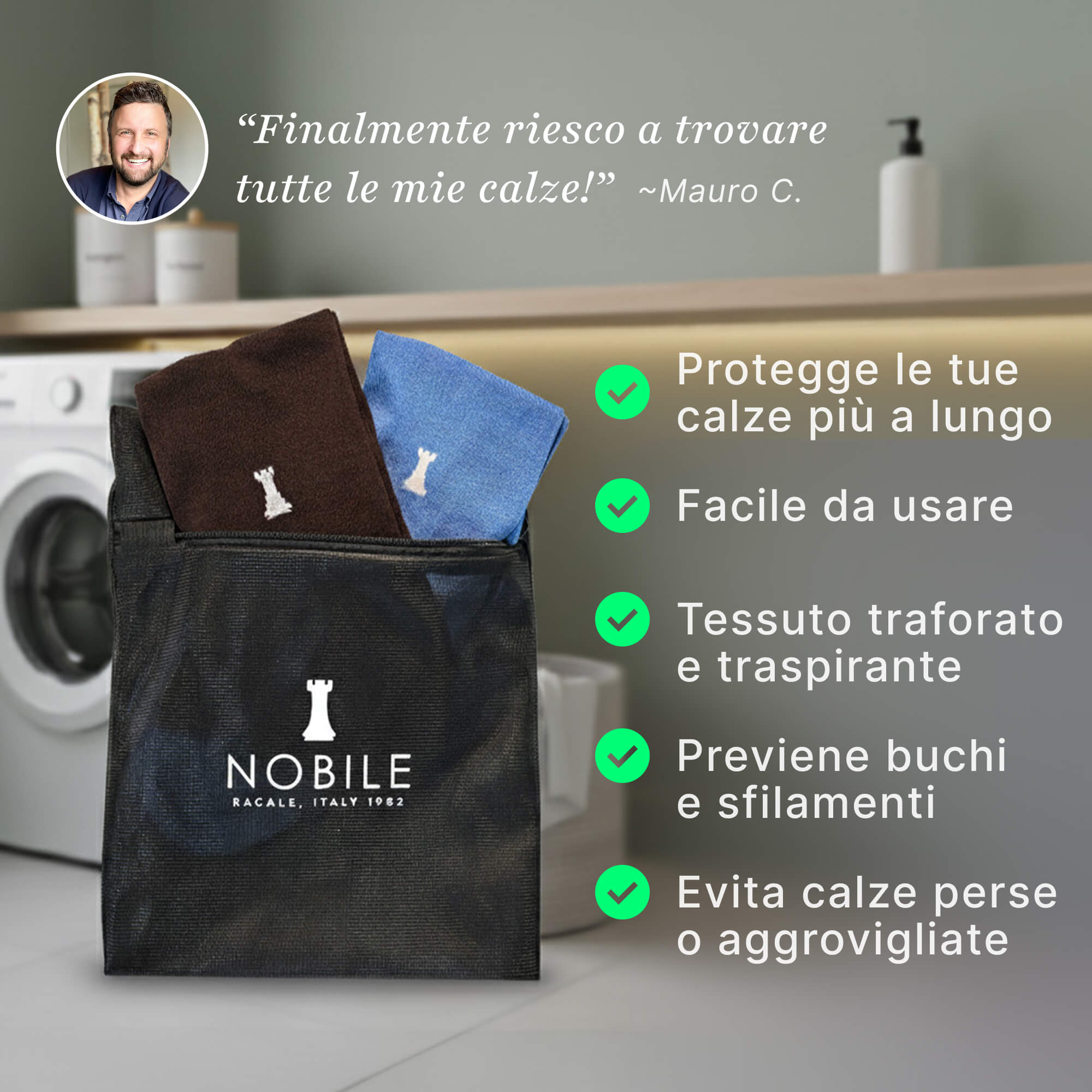 Il sacchetto per lavatrice Nobile 1982 ha un design studiato per proteggere le tue calze in ogni passaggio.