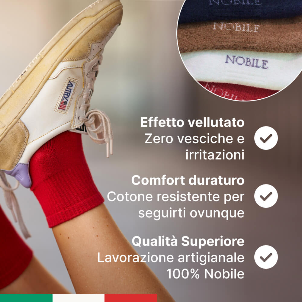 Le calze sportive Nobile avvolgono i tuoi piedi in un comfort straordinario, riducendo al minimo il rischio di irritazioni e vesciche.